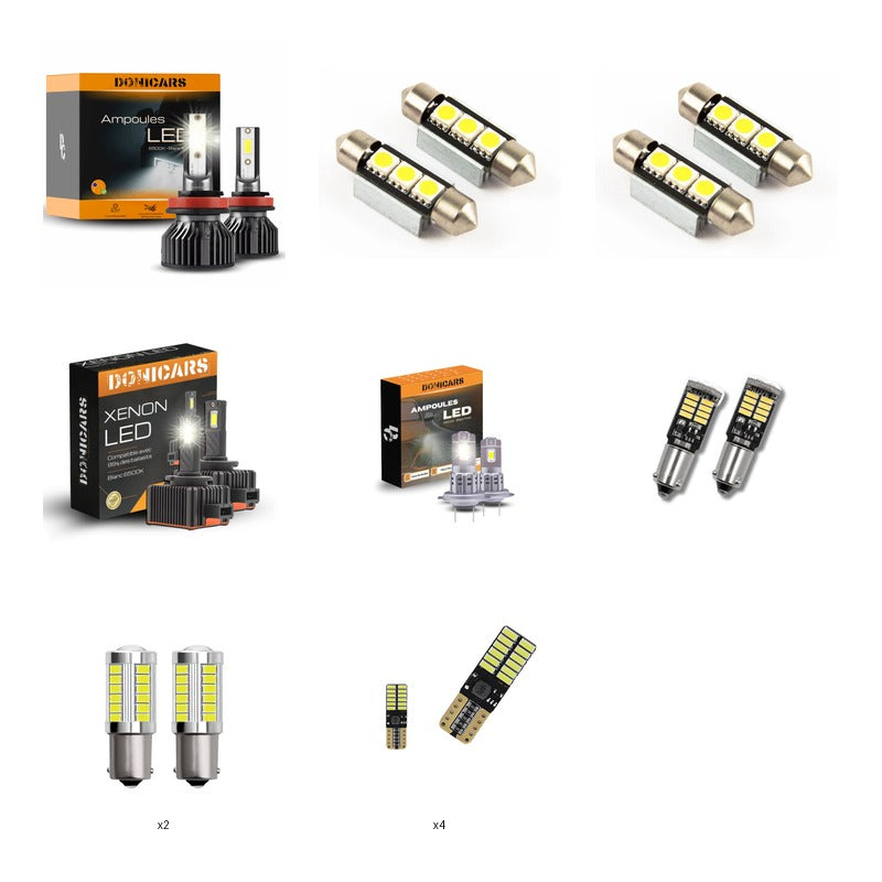 Feux de croisement, Feux de route, Feu de position, Antibrouillard avant, Clignotant avant, Feu de recul, Feu antibrouillard arrière, Éclairage de plaque d'immatriculation, Éclairage de coffre, Éclairage boîte à gants, Éclairage de lecture, Éclairage de bas de porte/pieds
